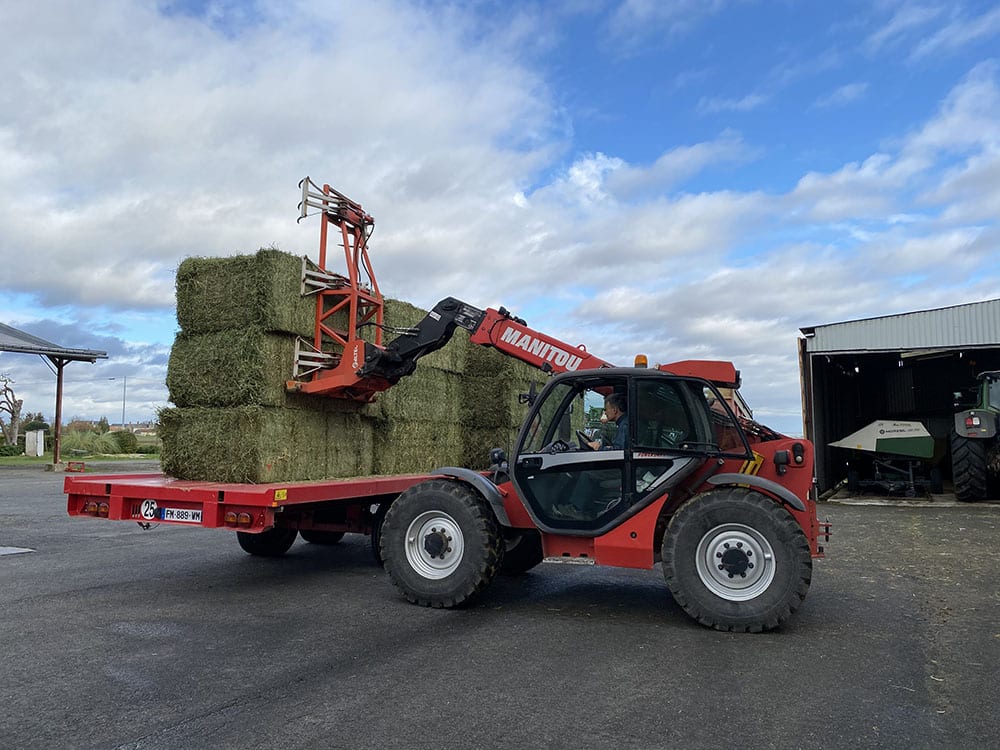 Enfin, votre entreprise accomplit le stockage des bottes, entre 15 jours et 10 mois, sur un fond de paille pour préserver la botte de l’humidité. Elle les stocke dans 3 hangars fermés et 1 ouvert mais protégé totalement de l’humidité par une rangée de paille, renouvelée tous les ans.